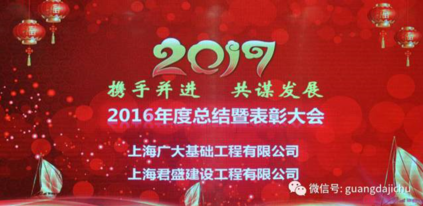 上海廣大基礎(chǔ)工程有限公司、上海君盛建設(shè)工程有限公司2016年度總結(jié)暨表彰大會(huì)隆重召開 2017-01-12