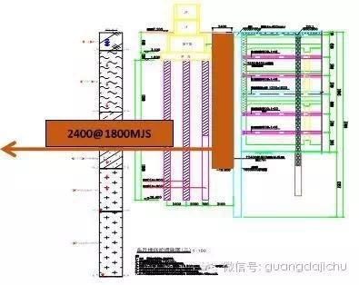 圍護(hù)結(jié)構(gòu)西段采用1000mm地下連續(xù)墻,東段采用采用灌注樁排樁;再結(jié)合2道砼支撐及5道鋼支撐。南側(cè)緊鄰東升大廈,在地下連續(xù)墻外側(cè)設(shè)置兩排MJS工法樁作為隔離樁,以減少地下連續(xù)墻施工及基坑開(kāi)挖期間對(duì)東升大廈的影響。MJS施工區(qū)域離東升大廈最近僅1.5m ,東升大廈一承臺(tái)距離MJS工法樁凈距僅1.36m。